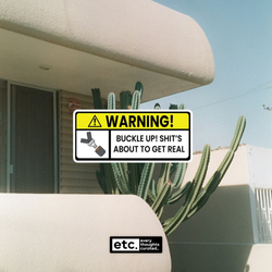 Warning, Buckle Up Shit's About To Get Real Sticker